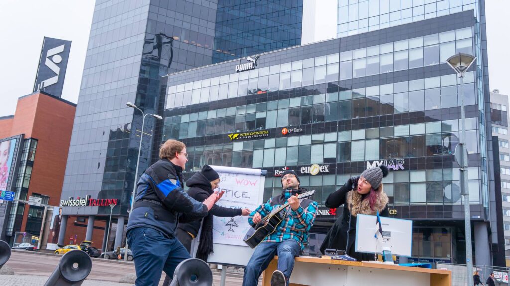 5MIINUST esinemas mullu Tallinna bussijaamas. Hiljem vaadati koos Eurovisionit. Foto: Martin Dremljuga